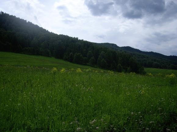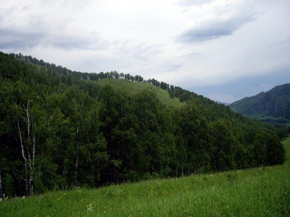 В окружении горы, покрытые лесом с преобладанием лиственницы и березы.